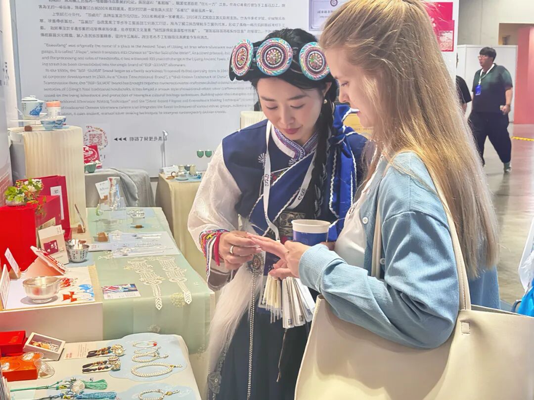 在眾多參展品牌中,中華老字號、云南銀器非遺傳承代表性品牌——百歲坊格外亮眼。此次攜兼具傳統(tǒng)銀器技藝與現(xiàn)代美學設計的銀飾產(chǎn)品參展,憑借深厚的文化底蘊與創(chuàng)新理念,成為展會聚焦的 “東方非遺名片”,不僅展現(xiàn)了中華老字號的品質實力,更向世界傳遞中國制造與中華文化的獨特魅力。